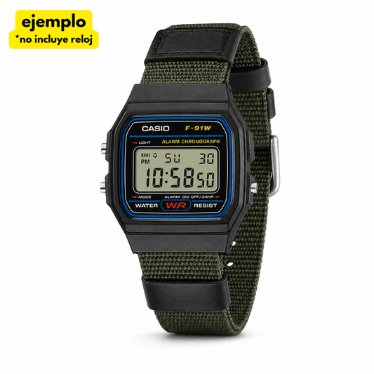 Correa Género y Cuero Verde 18mm para modelos Casio F91W | A158 | A168 | AE1200 | AE1300