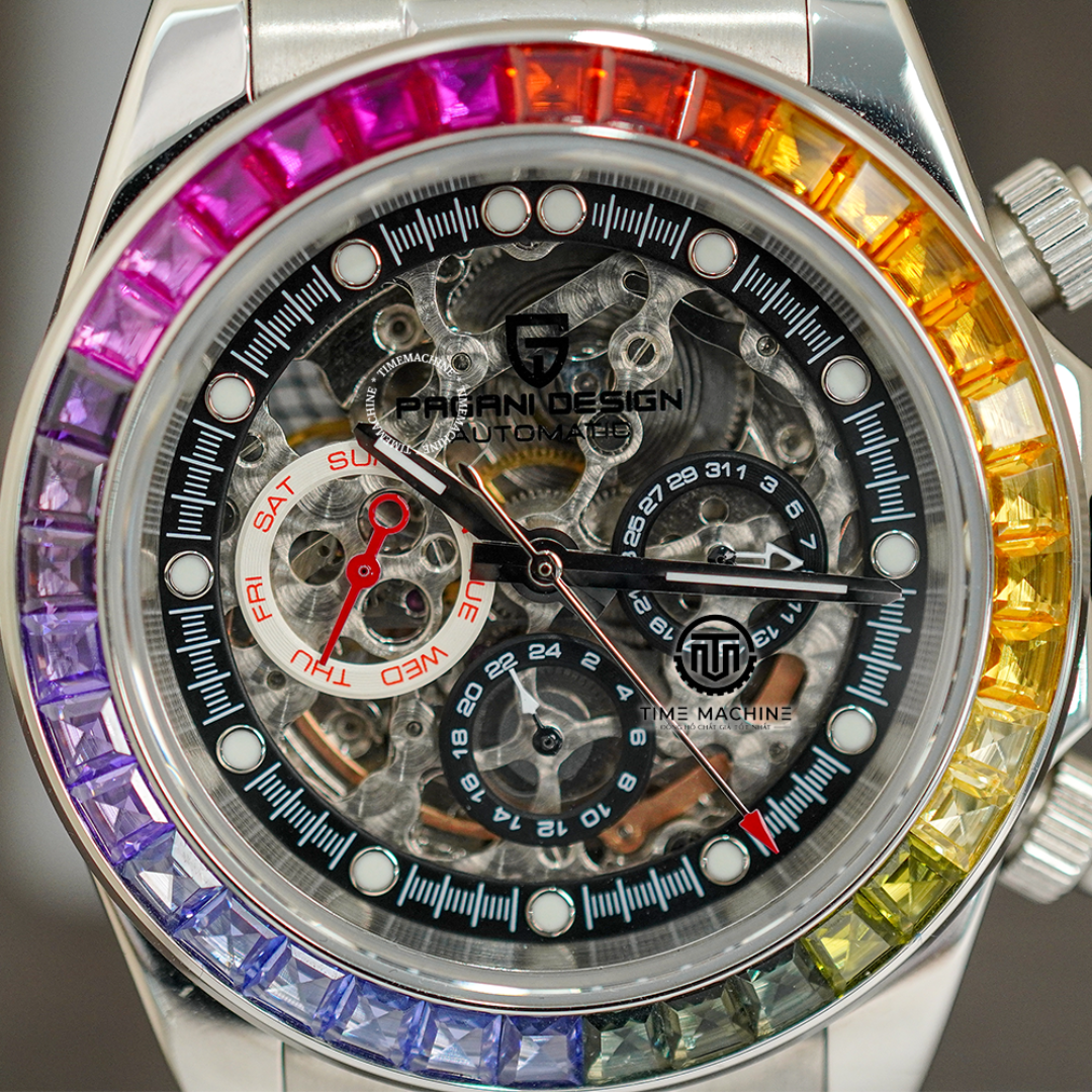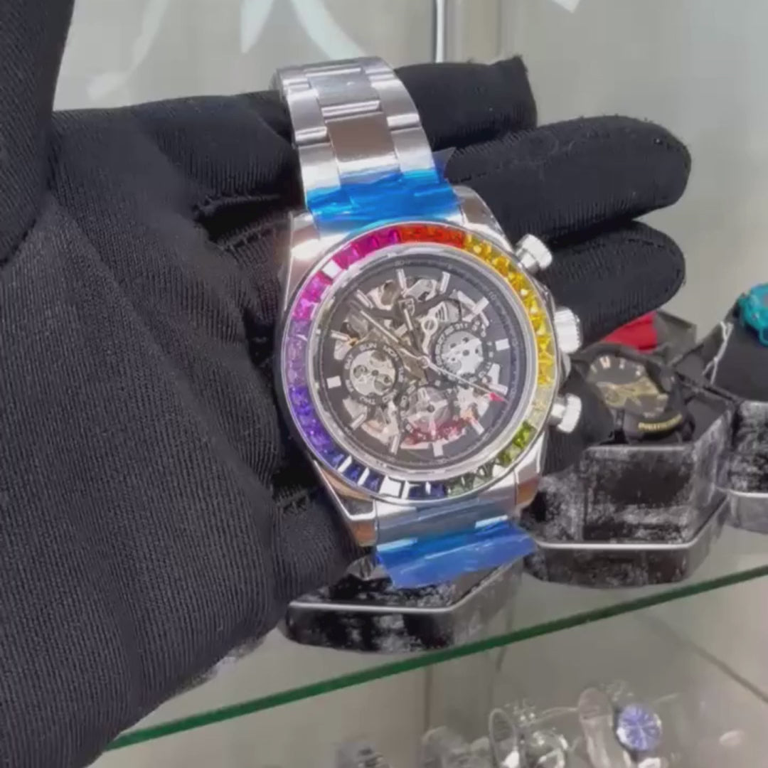 Con su diseño en forma de arcoíris, este reloj se destaca sin esfuerzo, haciendo que cada outfit se vea fenomenal. Es perfecto para hombres que aman la originalidad y la elegancia.