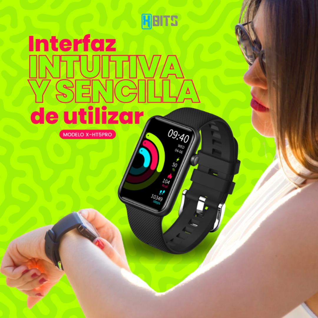 El Smartwatch XBits X-HT5PRO combina estilo, tecnología y practicidad para el día a día. Con su pantalla HD de 1.57” y resistencia al agua 5 ATM, incluye funciones avanzadas como oxímetro, detección de temperatura corporal, monitor de sueño y llamadas desde la muñeca. Su correa de silicona cómoda y sus carátulas personalizables lo convierten en un reloj versátil para cualquier ocasión.